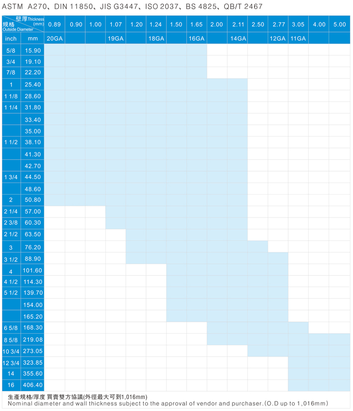 本系列產(chǎn)品多適用于食品工業(yè)制藥行業(yè)及相關(guān)對內(nèi)表面有要求的行業(yè) 產(chǎn)品經(jīng)過光輝固熔化熱處理后,管身金相組織均勻,并采用進(jìn)口拋光設(shè)備進(jìn)行鋼管內(nèi)壁拋光,并可依相關(guān)規(guī)范及標(biāo)準(zhǔn)進(jìn)行生產(chǎn)。